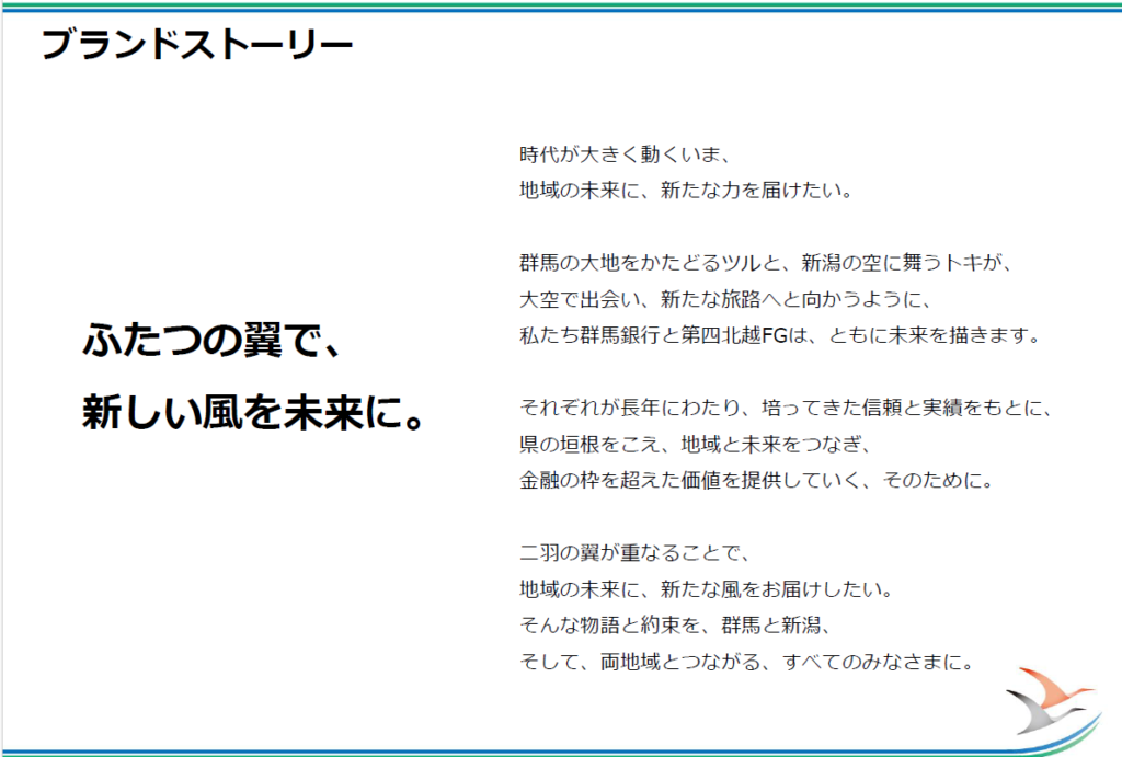 群馬新潟フィナンシャルグループ 2027年4月1日、群馬新潟フィナンシャルグループ、始動MISSION、VISION、VALUESBRAND STORY 2026年4月14日 投稿先 entertainment ← 過去の投稿へ 次の投稿へ →
